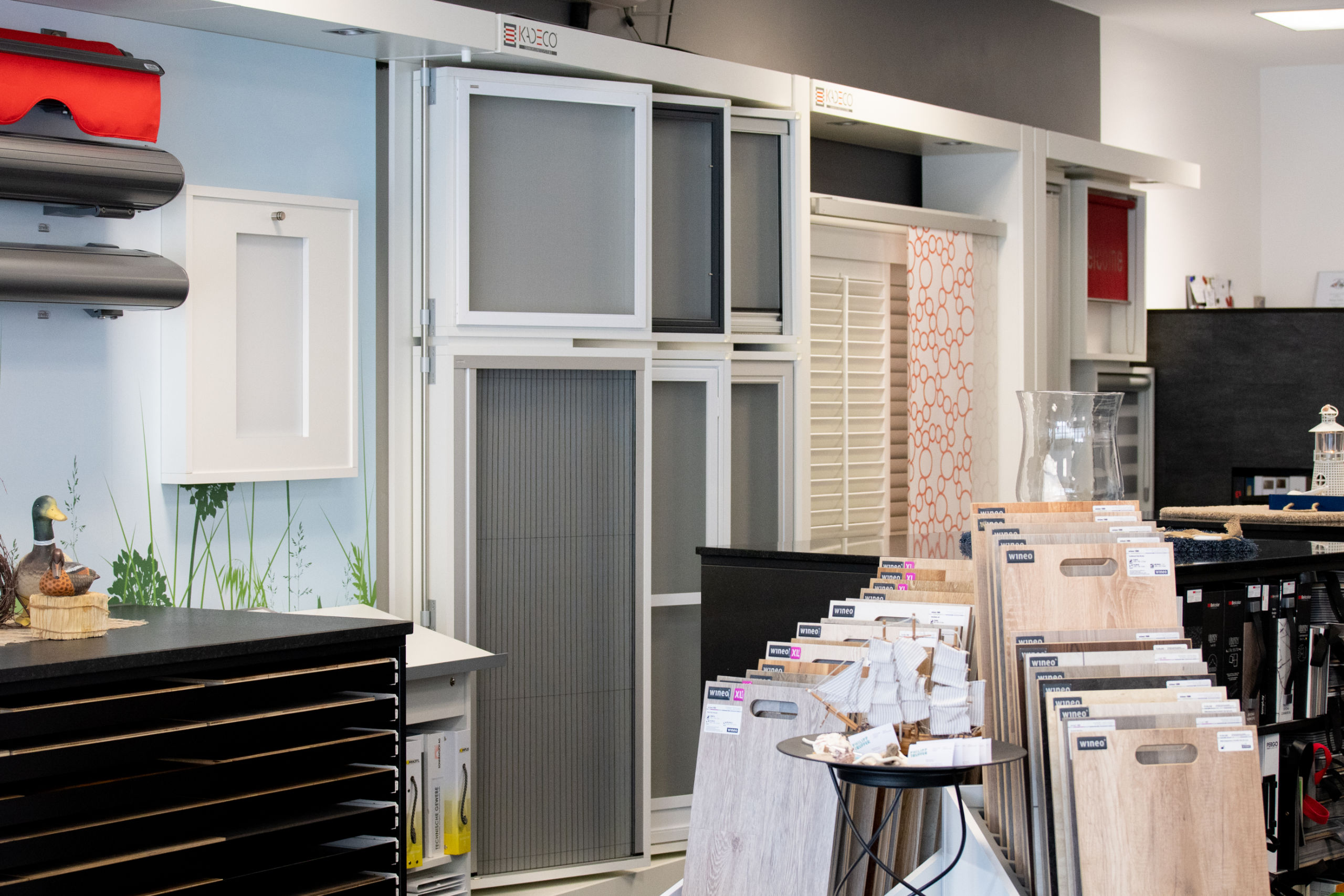 Auch Vorhänge, Plisses, Rollos, Jalousien und verschiedene Beschattungssysteme wie Sonnenschirme und Storen gehören zu unserem Angebot.